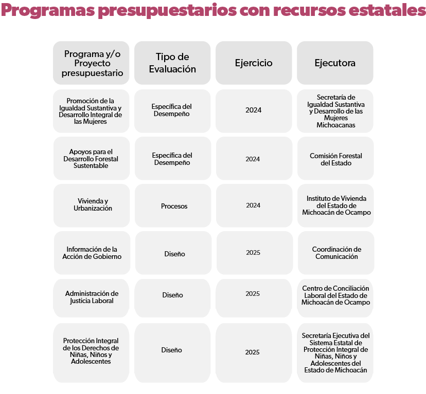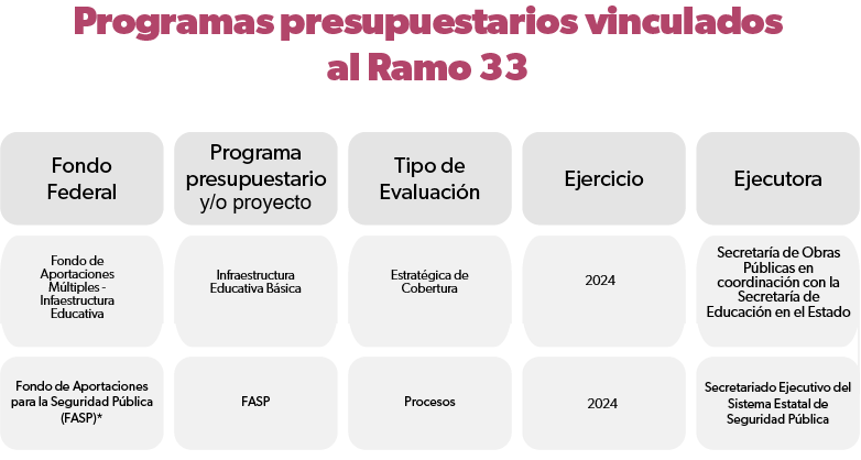 Nota:Derivado de que el proceso de evaluación se realiza una vez concluido el ejercicio fiscal, se reportan los ejercicios del año anterior en curso.